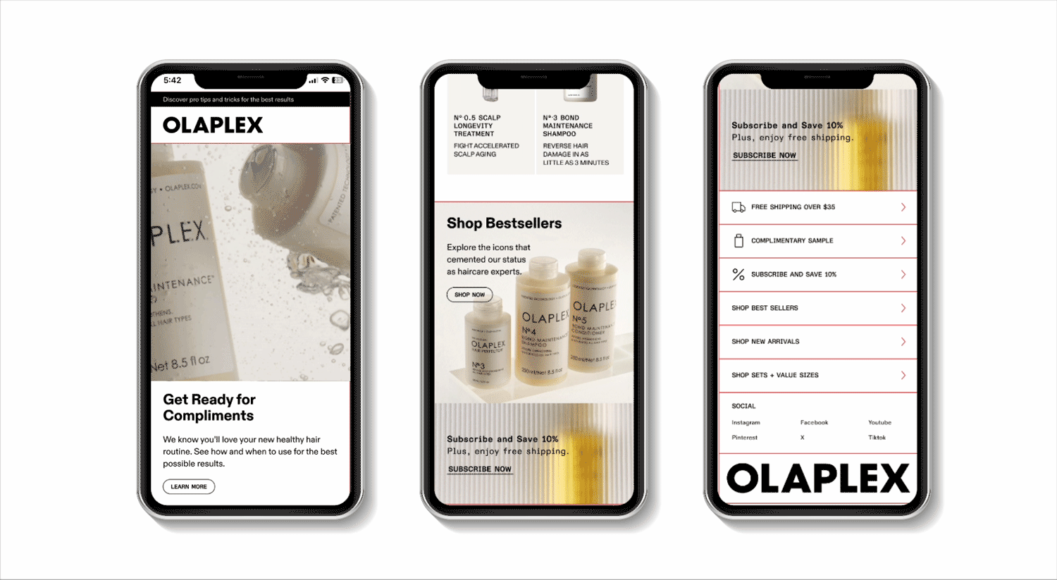 As Olaplex approached its 10-year milestone, the brand sought to evolve its visual identity and digital presence to meet the expectations of today’s beauty consumer. I was brought on as a digital experience consultant to support the site relaunch and elevate the brand across multiple digital touchpoints. My scope included refreshing paid media assets, redesigning retailer site content, and developing strategic email communications to engage consumers, drive retention, and increase brand awareness—all while delivering a cohesive and scalable digital experience across the customer journey.